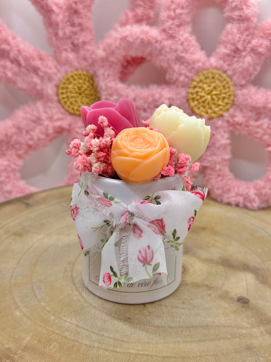 Mini bouquet de cire floral orangé/rose – Parfum Cerise