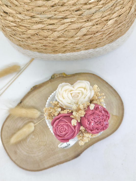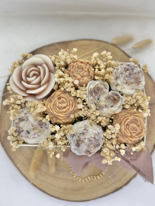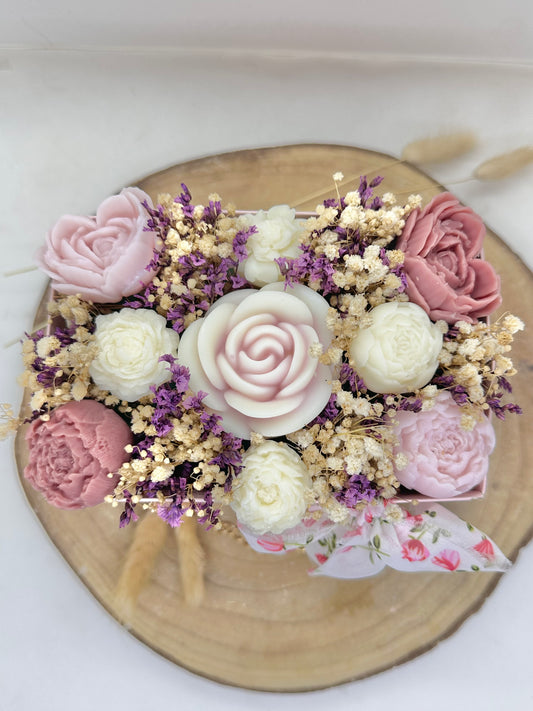 Bouquet de cire floral rectangle Rose - Crème de soin