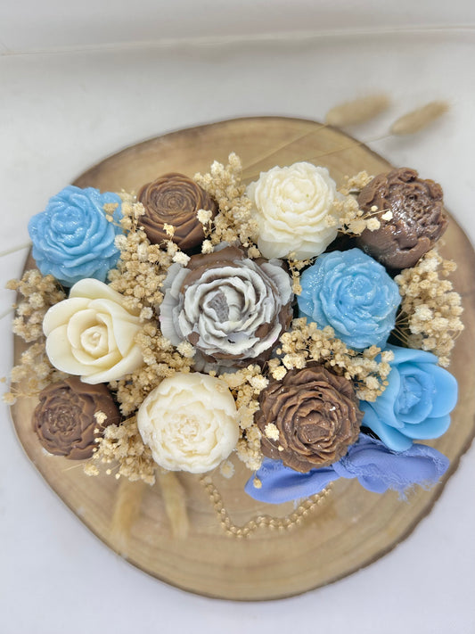 Bouquet de cire floral rectangle Bleu et marron - Adoucissant