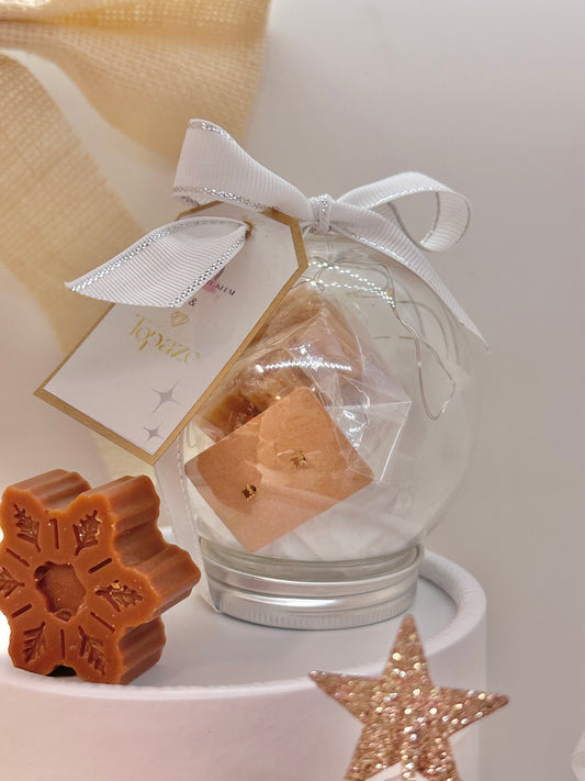 Petite Boule Cadeau LED – Fondant Flocon Nougat Blanc + Boucle d’Oreille Acier Inoxydable