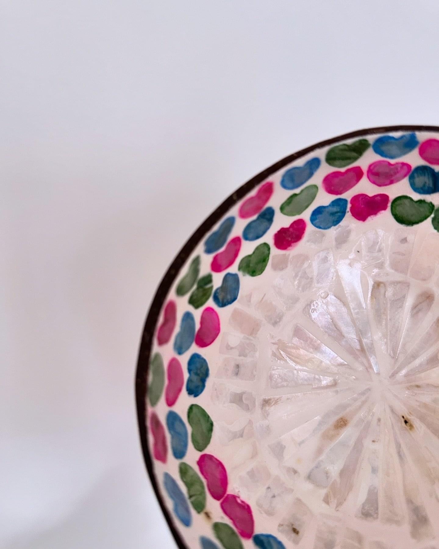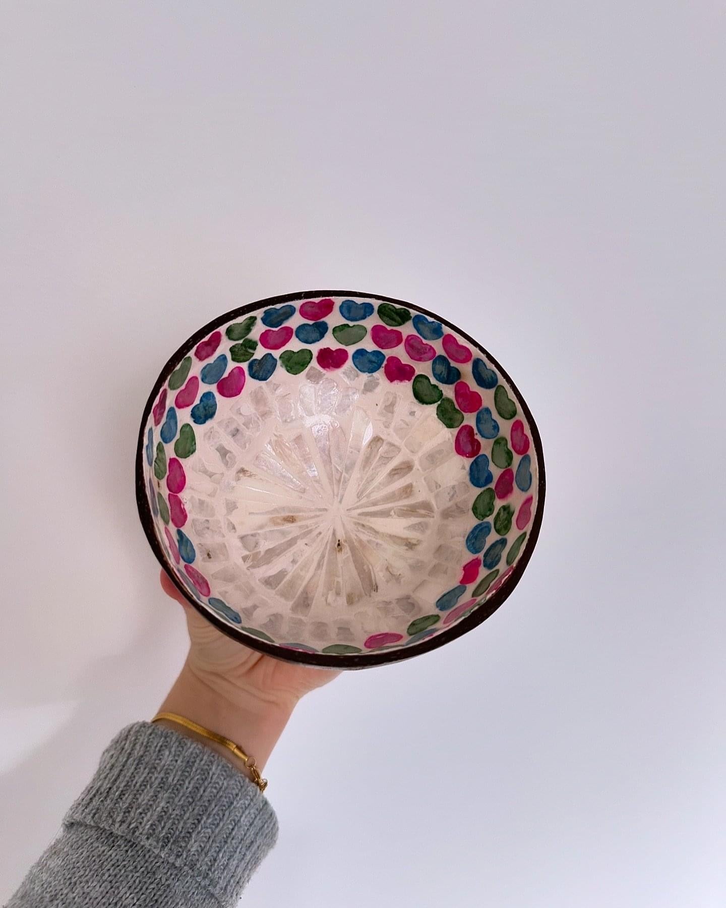 - Déco cœurs à l'intérieur de couleur bleu, rose et vert.